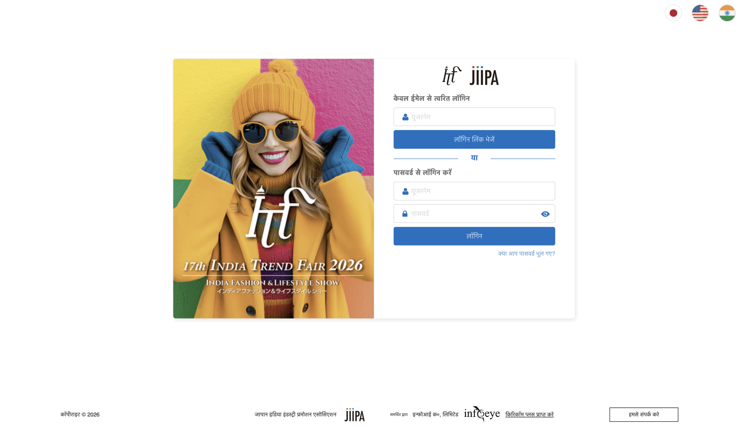 - इंडिया ट्रेंड फेयर टोक्यो 2026 साइट से साइन-इन बटन पर क्लिक करें।