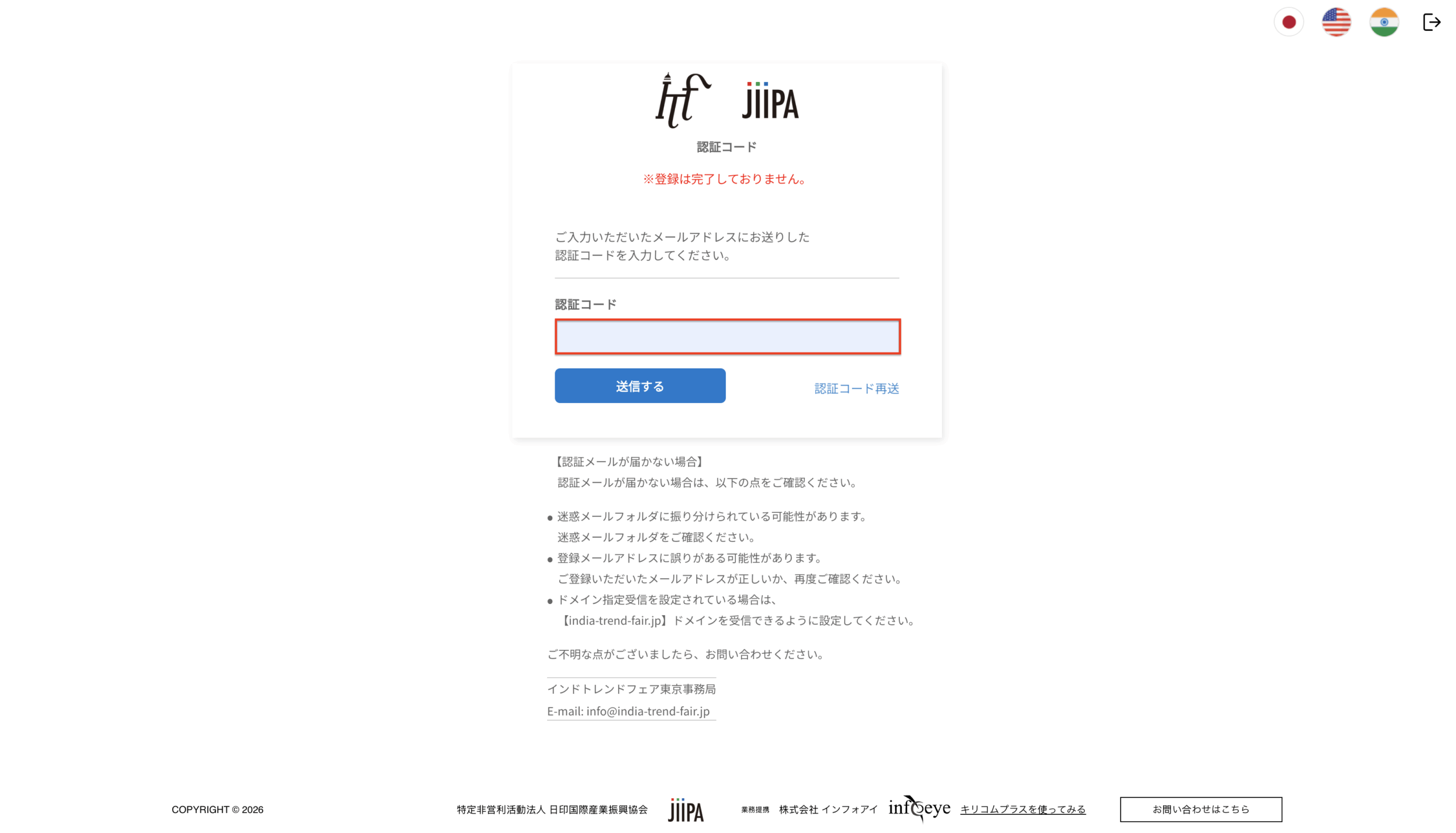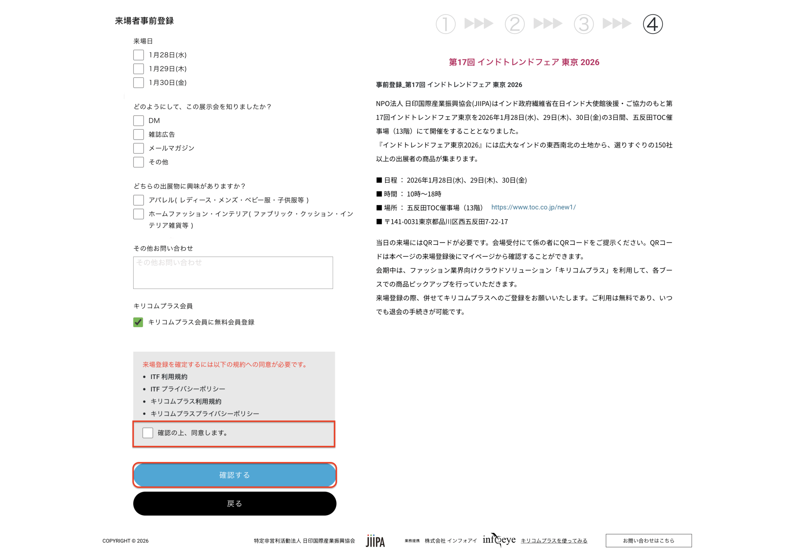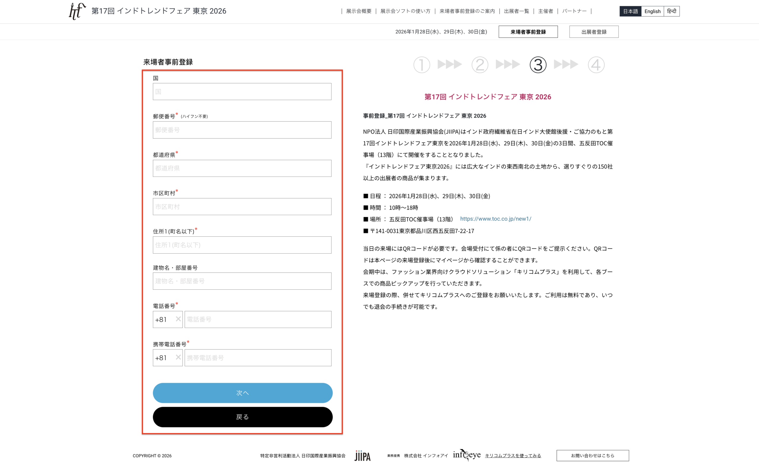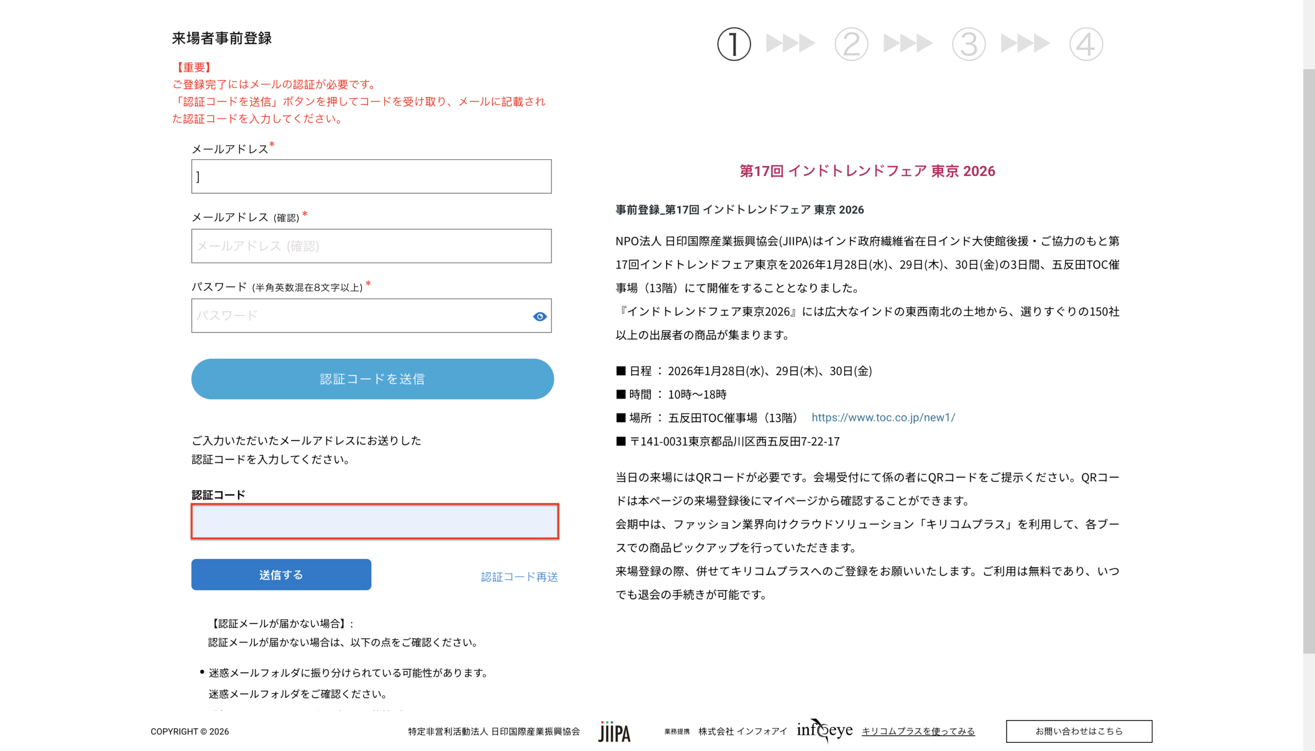 インドトレンドフェア東京2026ウェブサイトから来場者登録を行います