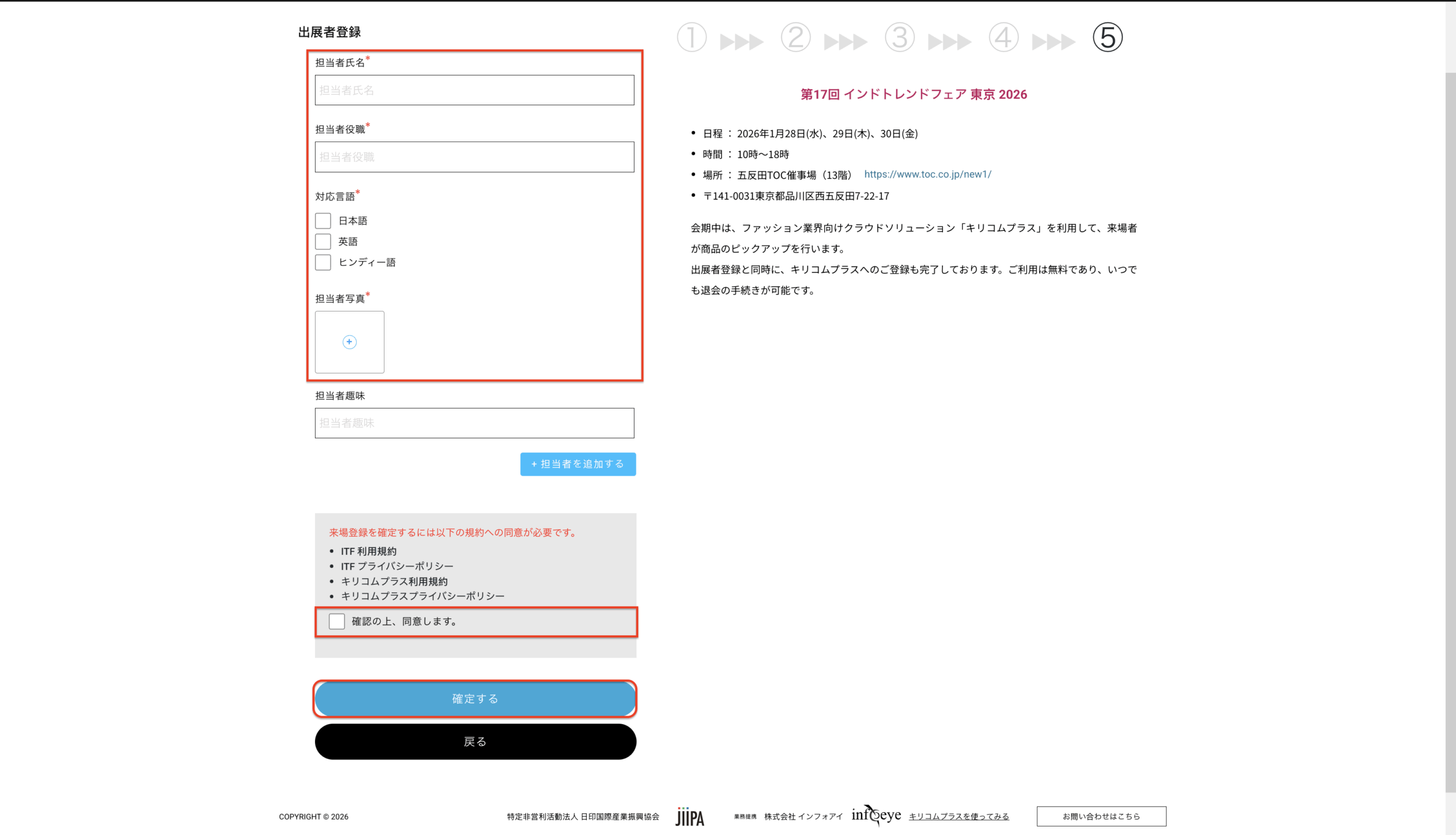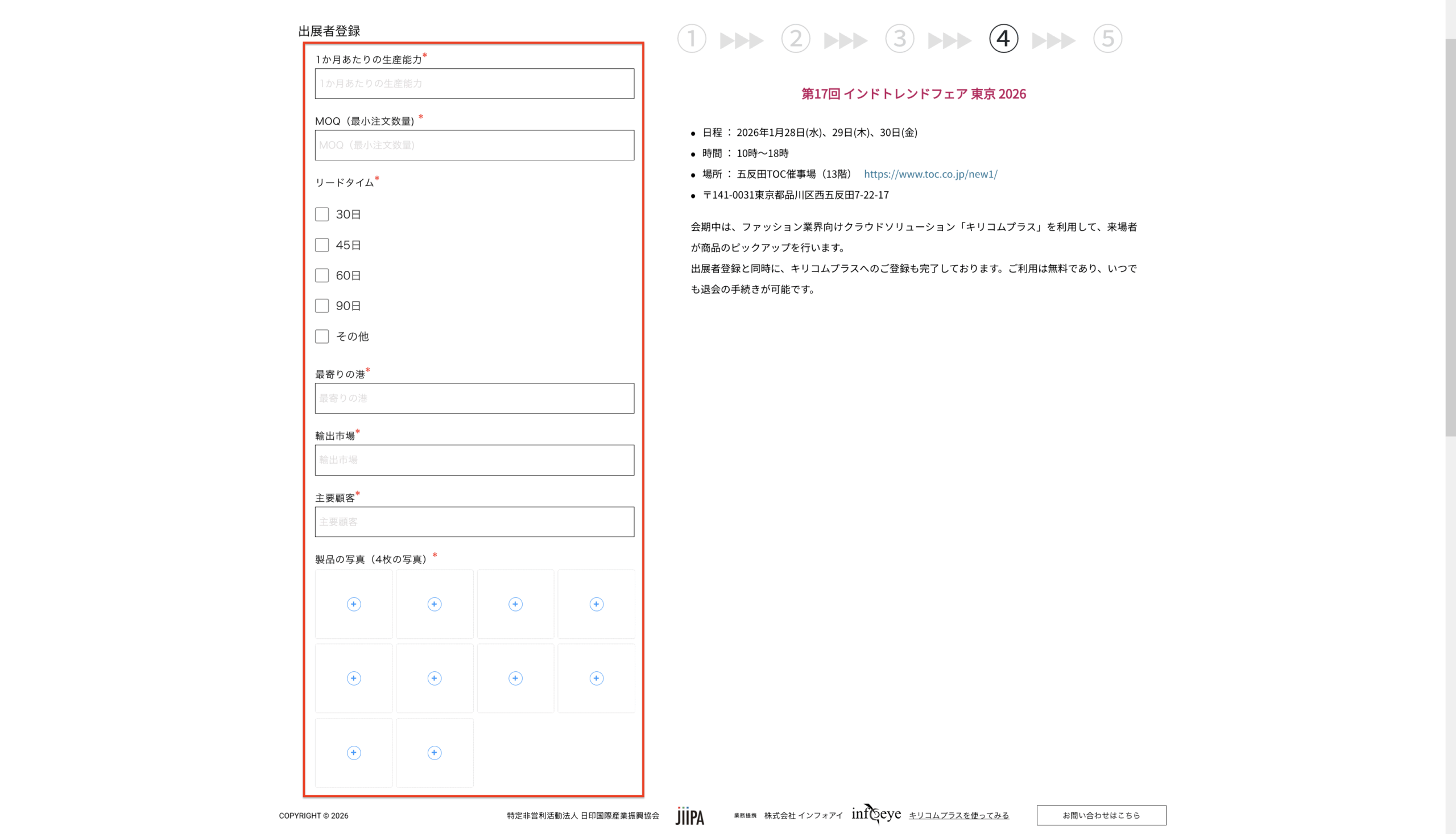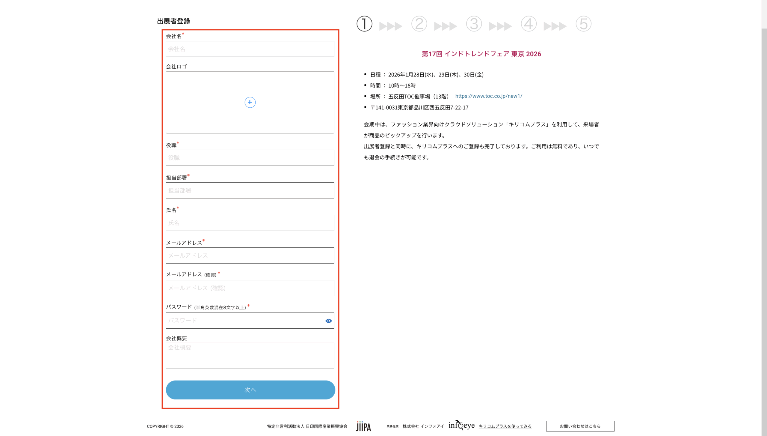 インドトレンドフェア東京2026ウェブサイトから出展者登録を行います