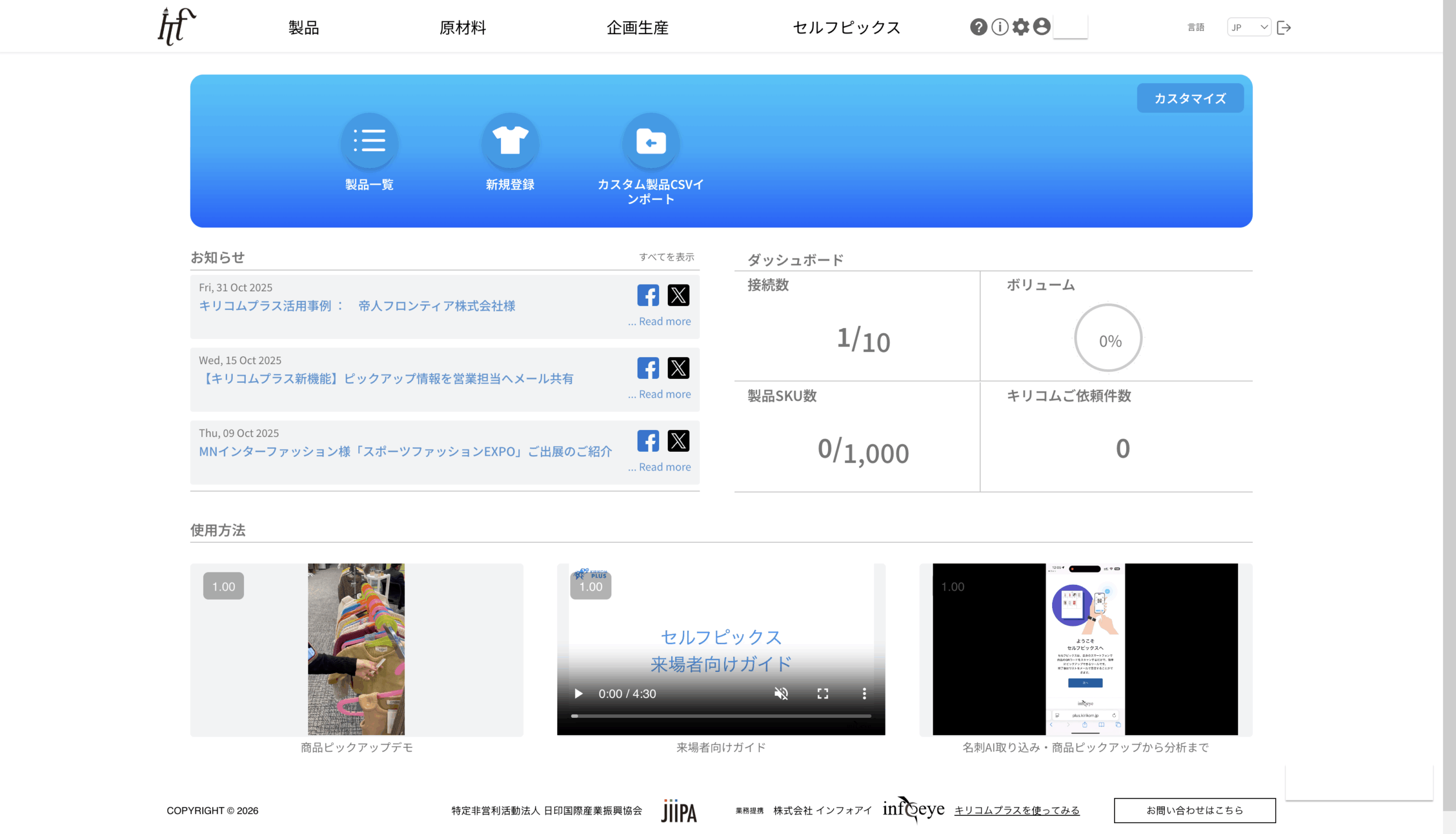 - 「認証コード」を入力し、「送信する」ボタンを押下すると、キリコムプラスのダッシュボード画面に遷移します。