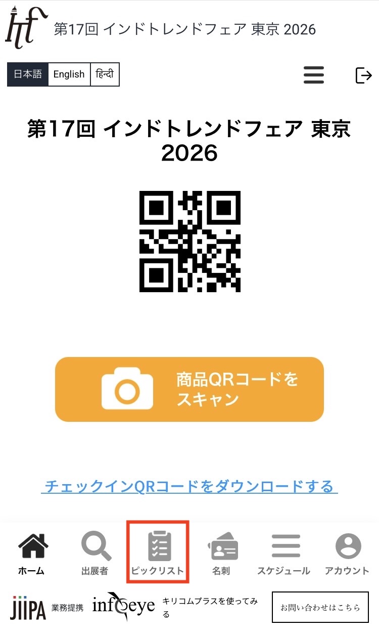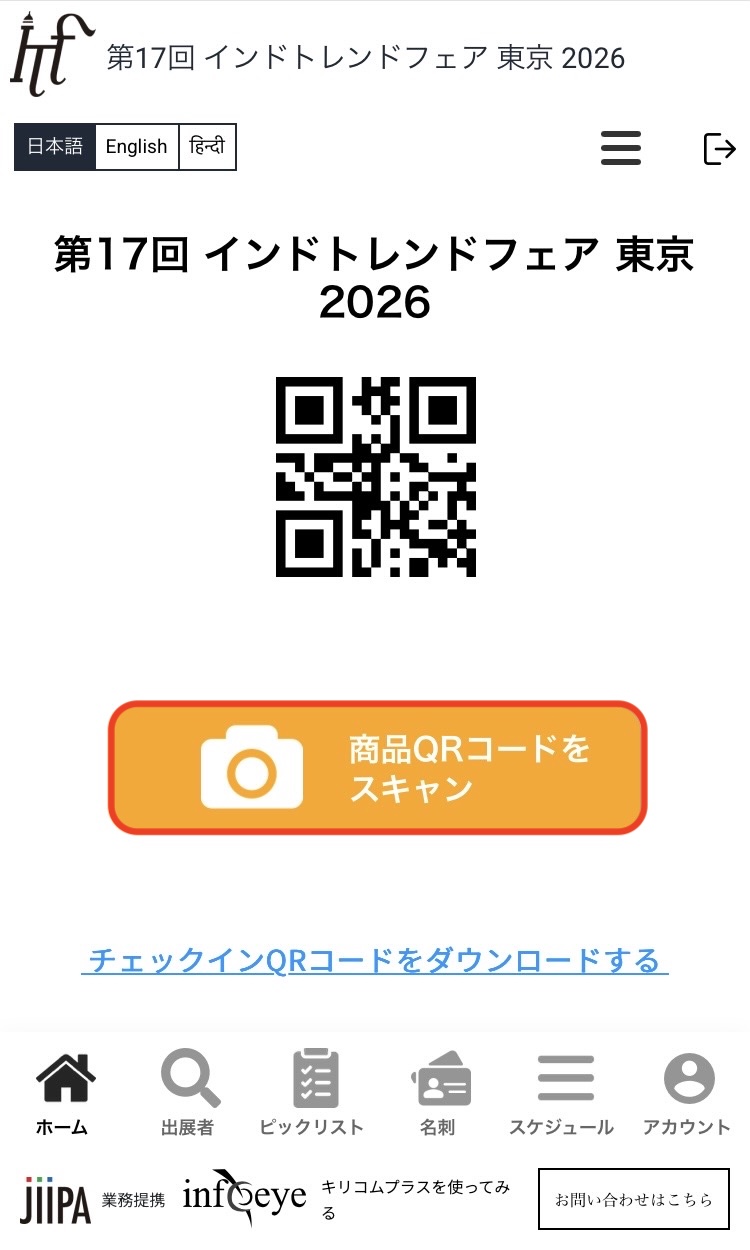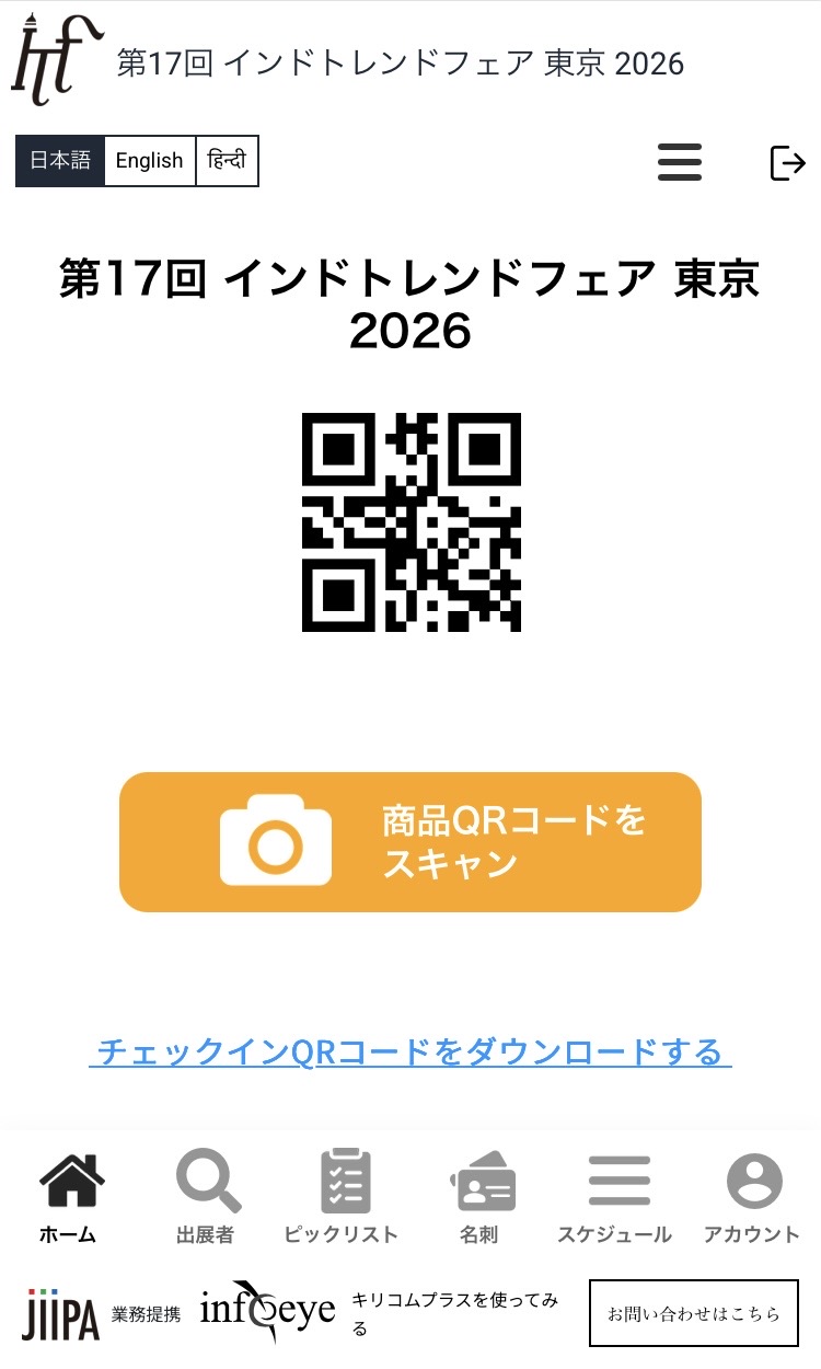- スマートフォンからインドトレンドフェア東京2026ウェブサイトにアクセスします。
